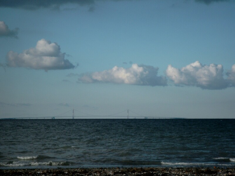 Die Brücke über den großen Belt; von der Nordspitze Langelands aus gesehen