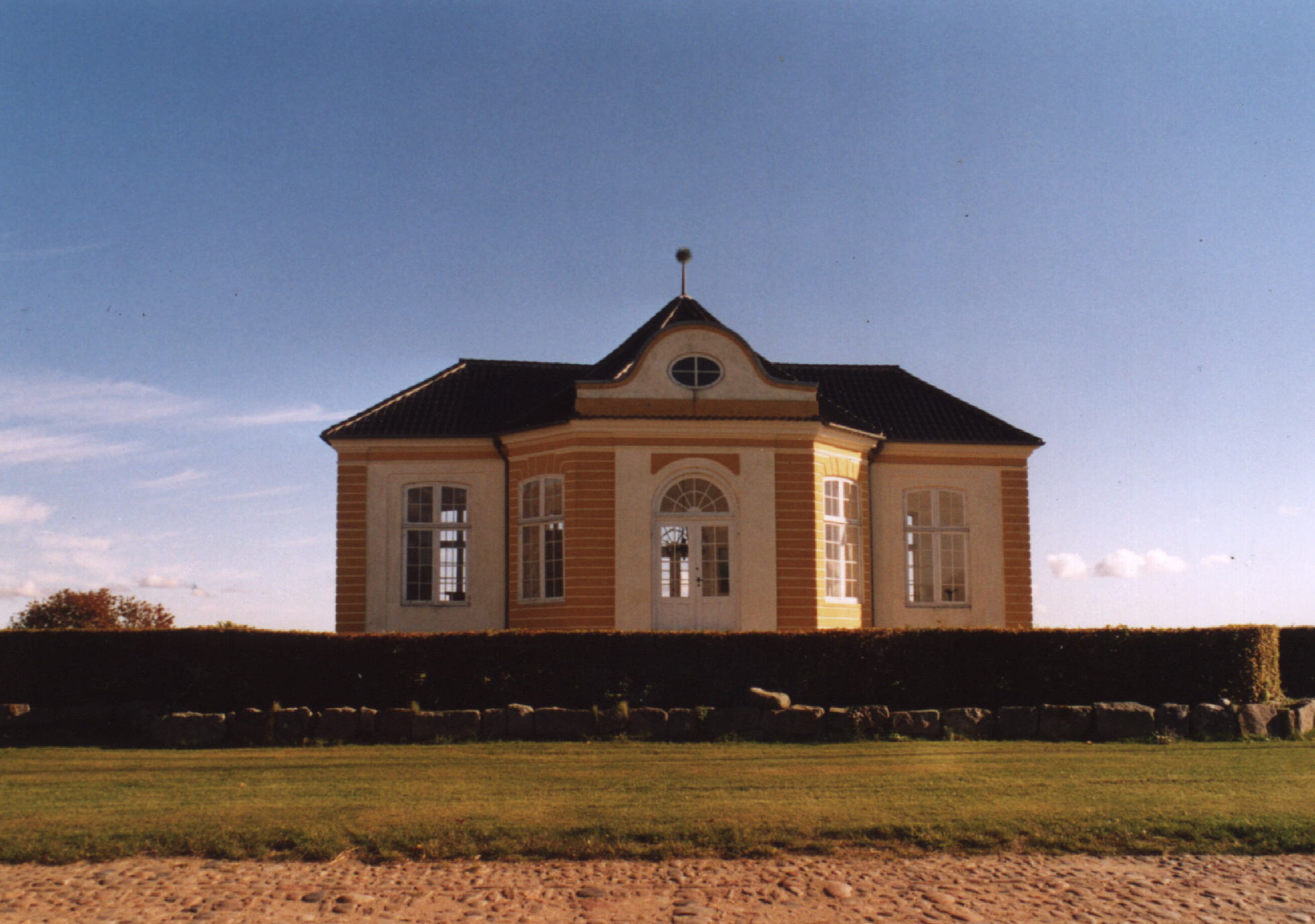 Valdemars-Schloß auf Tåsinge; Teepavillon (links) ...und Blick vom Schloss auf die Schlossanlage