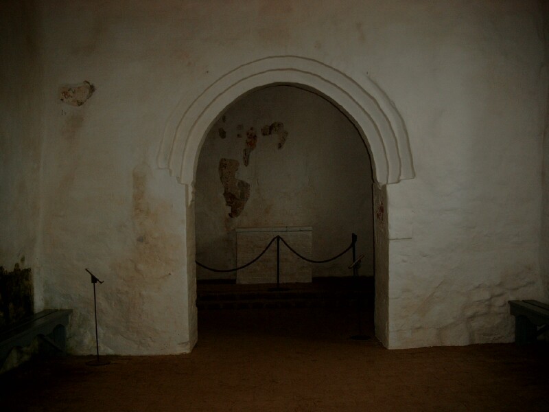 Marup Kirche, inzwischen zur Hälfte demontiert, um sie später irgendwo wieder aufbauen zu können